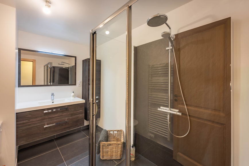 La salle bien-être dispose d’une douche à l’italienne et d’un sauna spacieux. Parfait pour se détendre après une journée de randonnée ou de ski.
