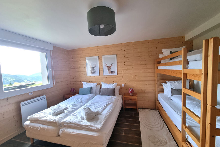 Nos 3 chambres principales sont équipées de lits doubles (160x200 cm) et la quatrième est parfaite pour les enfants, avec 2 lits simples et 1 lit superposé soit 4 couchages (90x200cm).