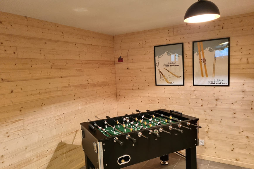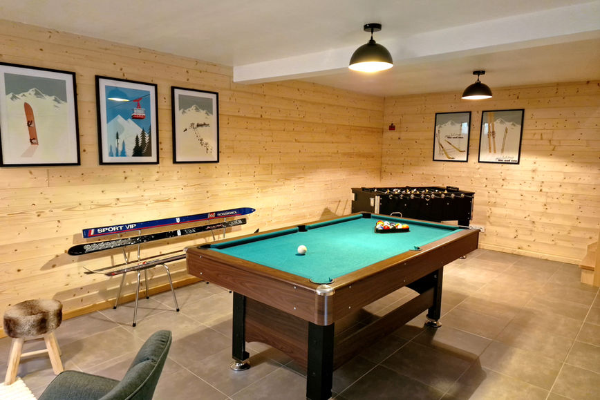 La grande salle de jeux est un paradis pour les amateurs de baby-foot, de billard et de jeux vidéo.